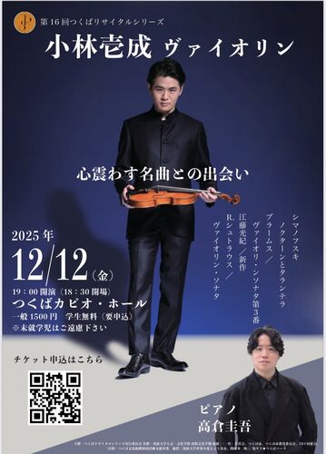 こんにちは、つくばリサイタルシリーズ実行委員会です! 本日より第16回つくばリサイタルシリーズのチケットの発売を開始いたしました!演奏会に関する情報をこのページにまとめましたので、ぜひご覧ください。 【チケット申し込み方法】○オンライン販売専用…